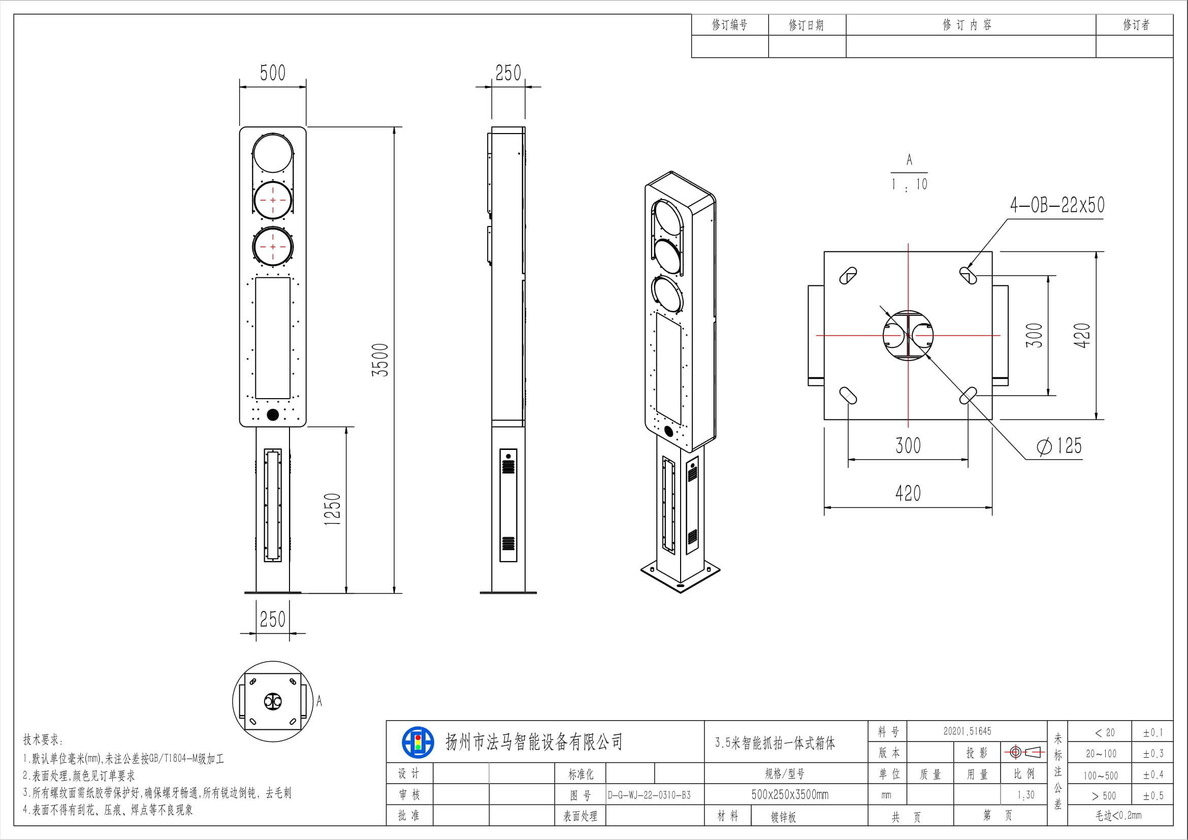 | Umumiy o'lchamlar | L × W × H: 500 × 250 × 3500 mm |